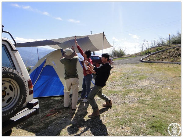 可能是過年前大家真的很忙,時間很難掌握,所以我營本部一樣一慣例在1月29日晚上7點半從台北出發,鳥大因為要趕好幾攤尾牙(誰叫人家又名尾牙王子),大約晚上11點半出發,小鍋因為要趕圖,所以到凌晨12點半出發,雖然我們出發的時間不同,但是目的地都是阿里山巃頂觀景民宿露營區,我到達營區時已經晚上11點多,迅速扎營睡覺,就沒有在拍了,早上5點半,朦朧之中看見鳥大抵達,雖然不想起來,但是還是勉強爬出溫暖的被窩,歡迎兵器連,6點半新兵小鍋一家也到抵達,這時整個營區,只有山字營。