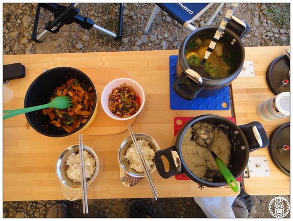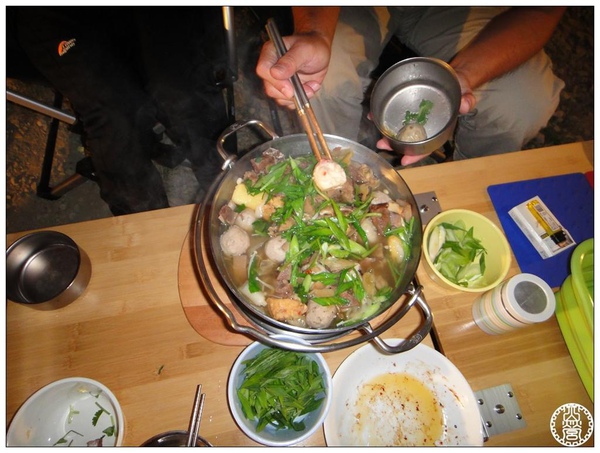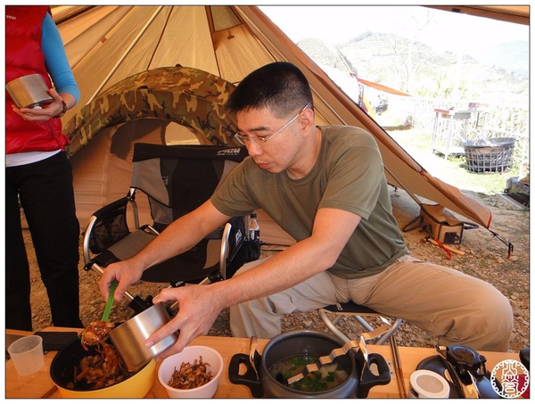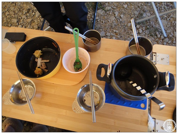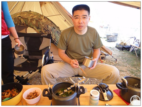 現在鏡頭轉到新兵小鍋的小巨蛋帳內,這兩天我們的摩卡咖啡都由新兵小鍋供應,小鍋也說是無限暢飲,這是12杯份的摩卡壺,我跟鳥大看到都三條線,這樣喝下去我看晚上也不用睡了,不過還蠻好喝的,小鍋一家都在小巨蛋帳內用餐,我跟鳥大不時還看看有沒有什麼好料,可以打打秋風!
