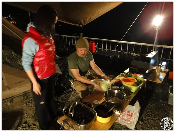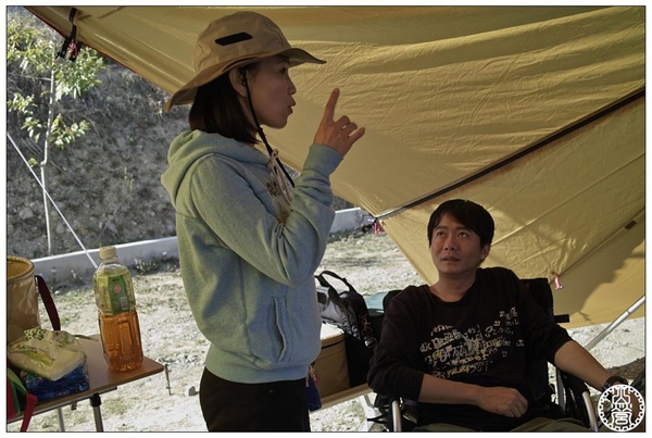 我們隔壁來了一對熱戀中的小情侶,可能是比較少露,所以不太純熟,鳥大很熱心的協助,以免風大造成天幕的損傷,喂!小鍋你不幫忙也就算了.....還在搞怪,禁閉一週。