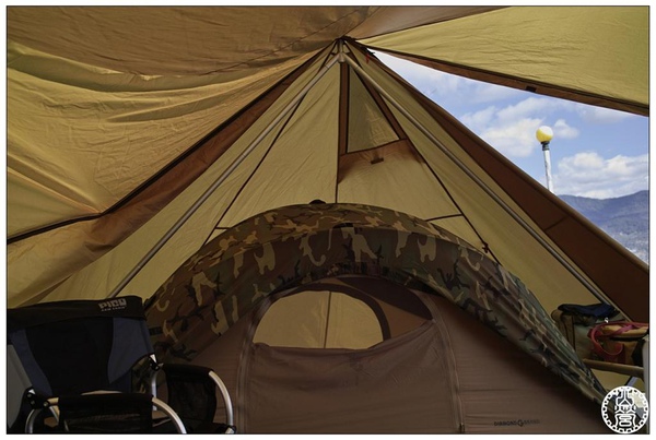 右半邊則是我們家的睡帳,怪獸天幕正好讓我跟鳥大兩家人使用,空間上感到非常舒適,隨著天候可作不同搭設的變化,如果大家注意看就會發現。