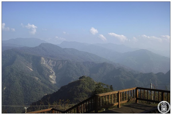 可遠眺阿里山森林遊樂區,玉山「主峰」、「北峰」、「北北峰」、「南峰」及「塔塔加」等群峰視野,七層山峰層層疊疊,盡入眼簾。