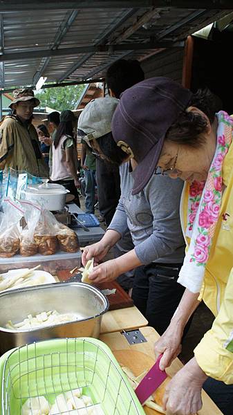 婆婆媽媽一起幫忙切菜準備今天中午的午餐。