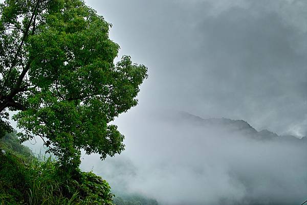 早上眼睛張開,發現透過帳棚感覺有陽光灑入?心想這是真的嗎?原本預計今天的天氣可能一樣是下一整天的雨,走出帳外一看真的沒下雨了,雲霧繚繞陽光還不時的探頭出來!