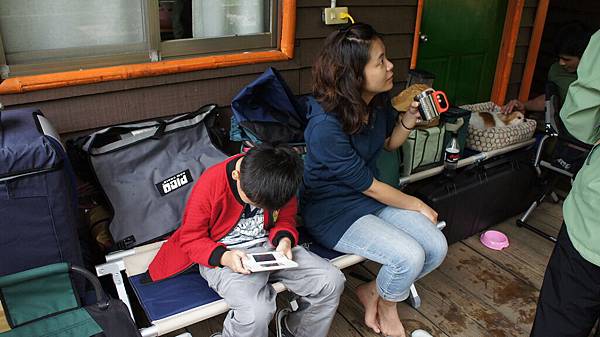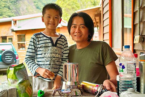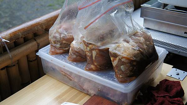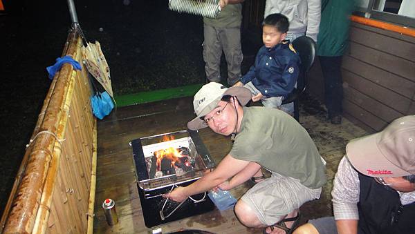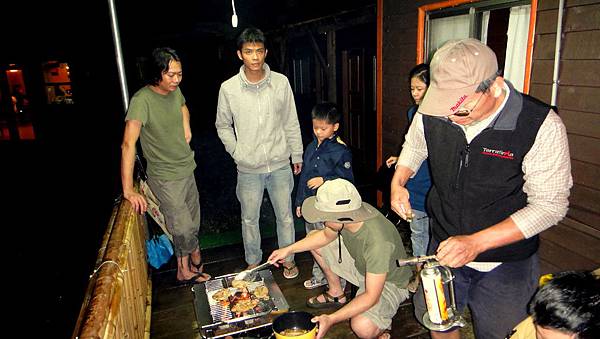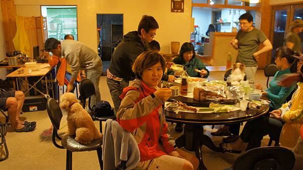 補眠完畢營地主人摟信正好回來,一直跟我們抱歉,因為他帶女兒去看病,比較晚回來,同時我也跟摟信商量,因為雨可能會一直下我們希望能借用餐廳來用晚餐,摟信也爽快的答應了,我們也邀請他來一起共享晚上的烤肉大餐。