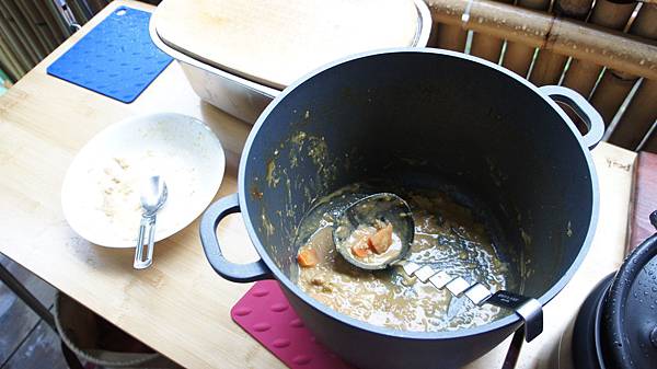 蔬菜咖哩好了,油悶桂竹筍也好了大家準備開飯了。