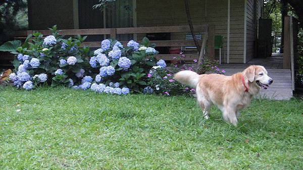 我家女王帶狗狗到上層營地溜溜,繡球花盛開。