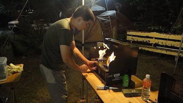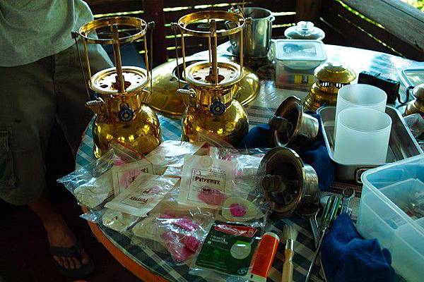 鳥大趁著大家在聊天,開始將他的燈拿出來野地保養,鳥大你有病啊,沒事帶這麼多燈芯出來幹嘛?