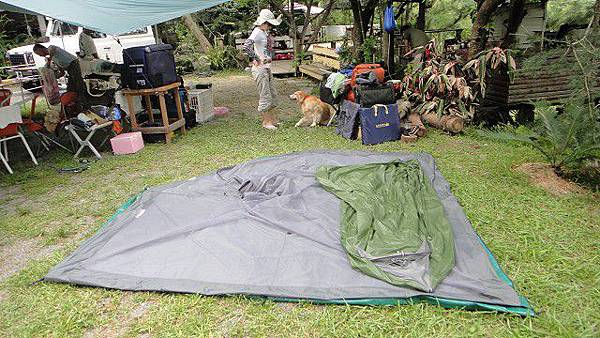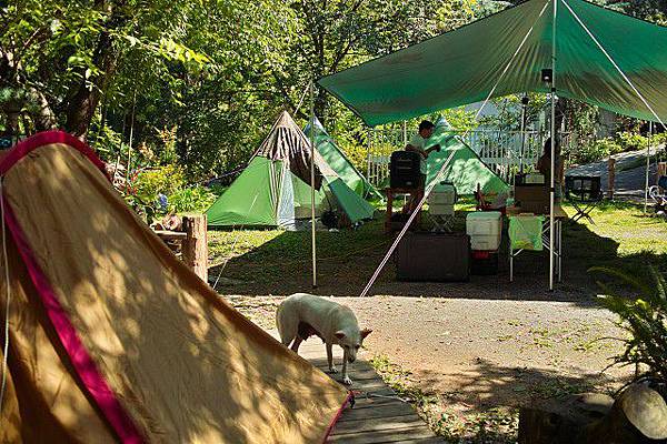 所以是個夏天避暑的好營地,這次鳥大說,因為大家都有帶狗狗,為了避免打擾別人,乾脆這次包場好了,所以這次只有我們,營帳搭在下層,樹蔭比較多,部分車輛就停在上層吧!這樣不會太擁擠。