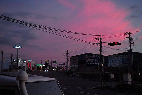 離開鯉魚潭水庫後堰池我們轉台一,來到苑里,拍到這泛紅的天空。